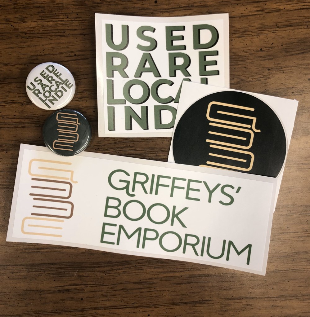 –GBE pins and stickers. If you want to show your support for GBE on your hat, bag, laptop, or water bottle, now you can! We have three lovely sticker designs ($1.00 for the small designs, $1.50 for the large logo design) and two cute pin designs ($1.49 each) available here in store for the first time since our pop-up events last fall.